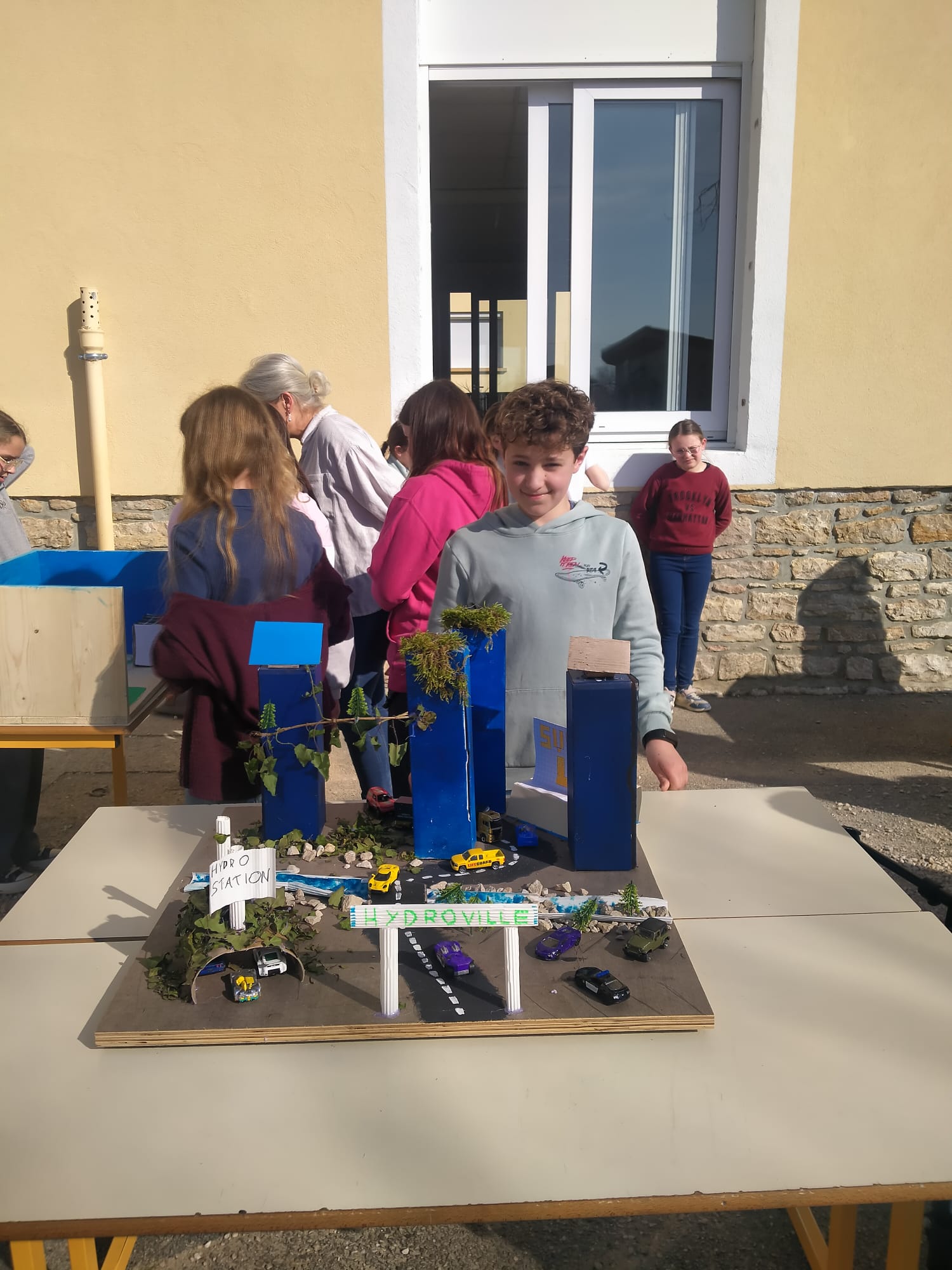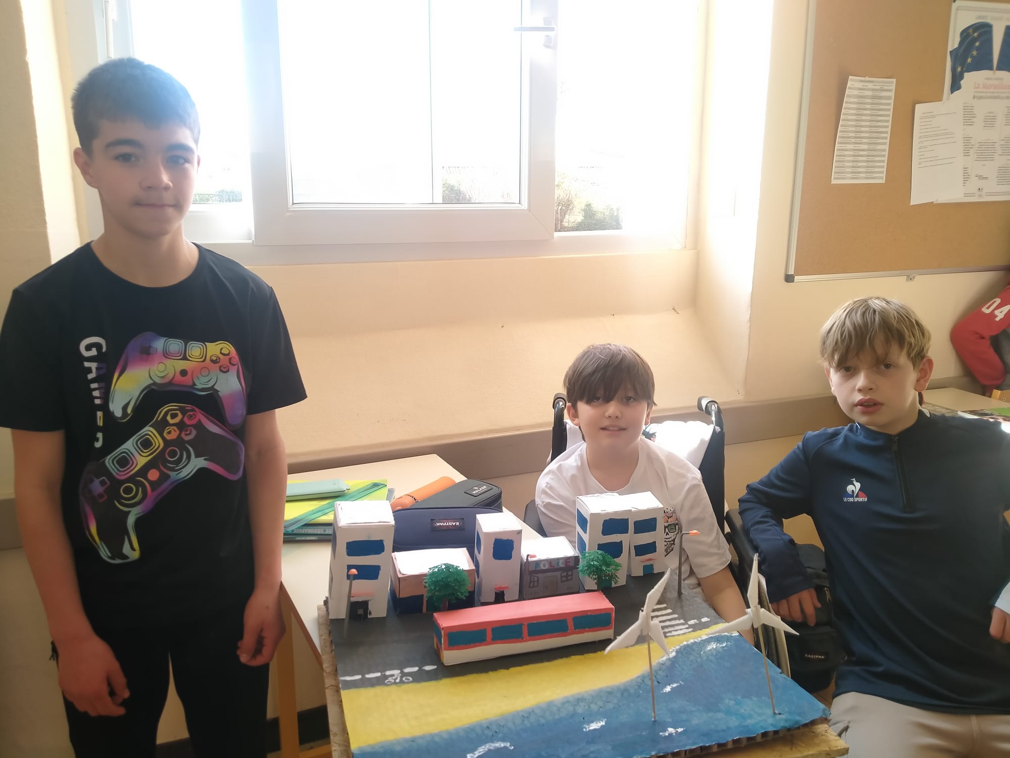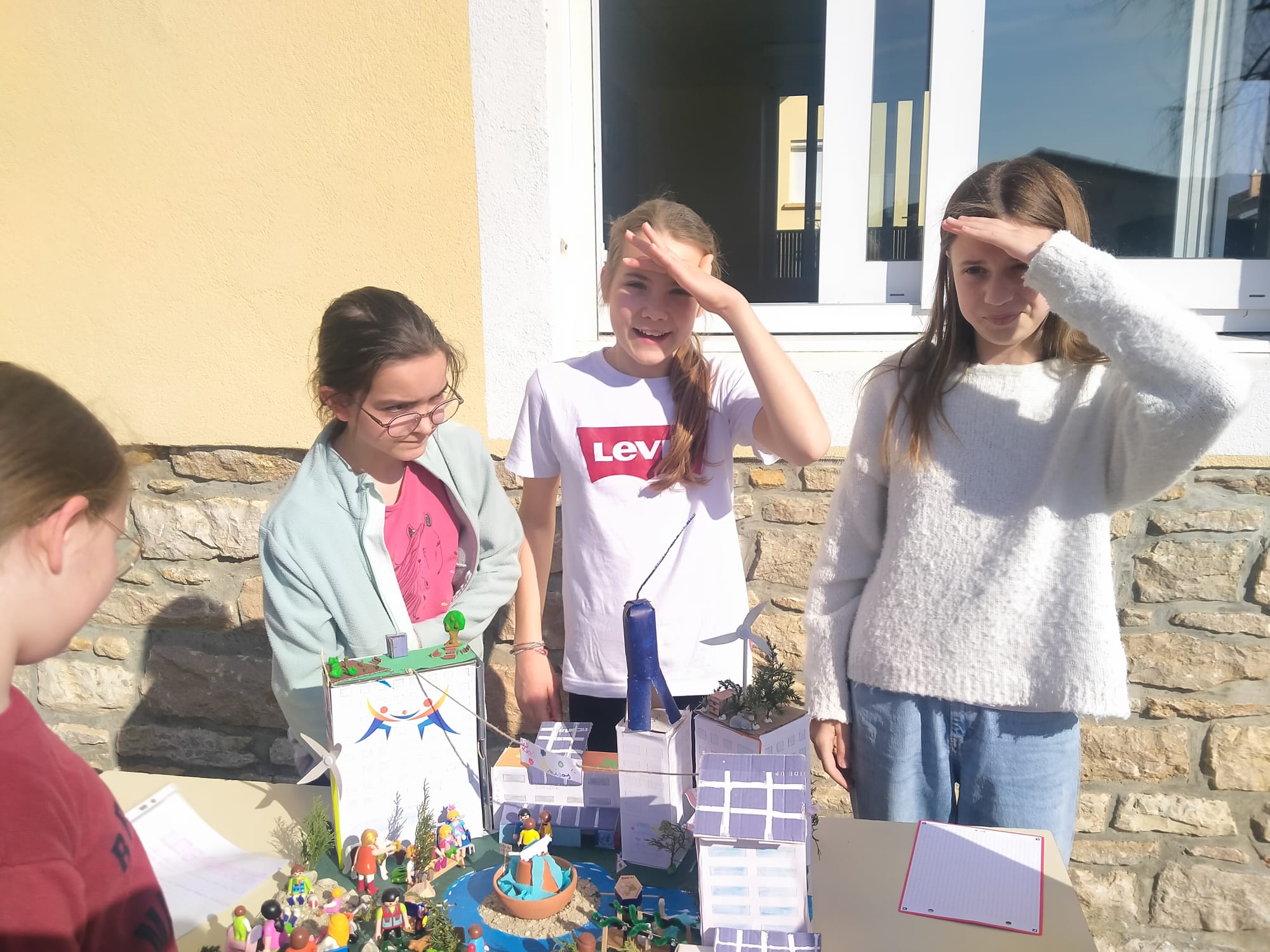 Dans le cadre des cours de géographie, les élèves de Mme Bompard ont imaginé leur ville du futur. Ce vendredi 20 mars, lors de la récréation et grâce à leurs maquettes, ils ont expliqué avec beaucoup de précision leur vision idéale d’une ville plus respectueuse de l’environnement.