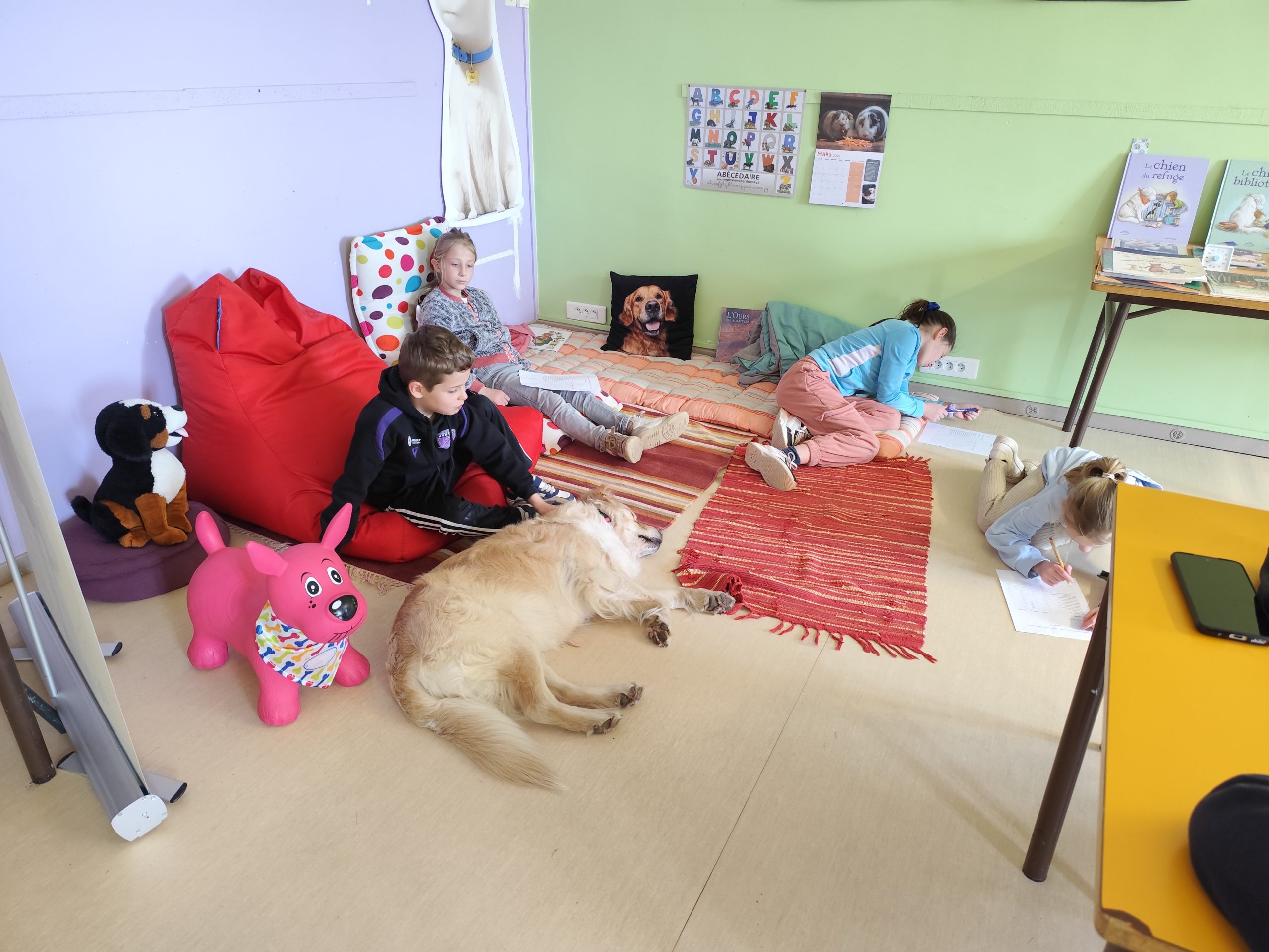 Pour faire suite à ce projet, conscients des bienfaits apportés aux élèves par la rencontre de la chienne, quelques élèves participent à des séances individuelles de lecture avec R’Mione et Laurence. Il s’agit d’amener les élèves à considérer la lecture comme une source de bien-être. Ce projet est financé à 80% par la Fondation SOMMER qui vise à développer la médiation animale, pratique fondée sur les interactions positives entre l’humain et l’animal familier ou domestique.